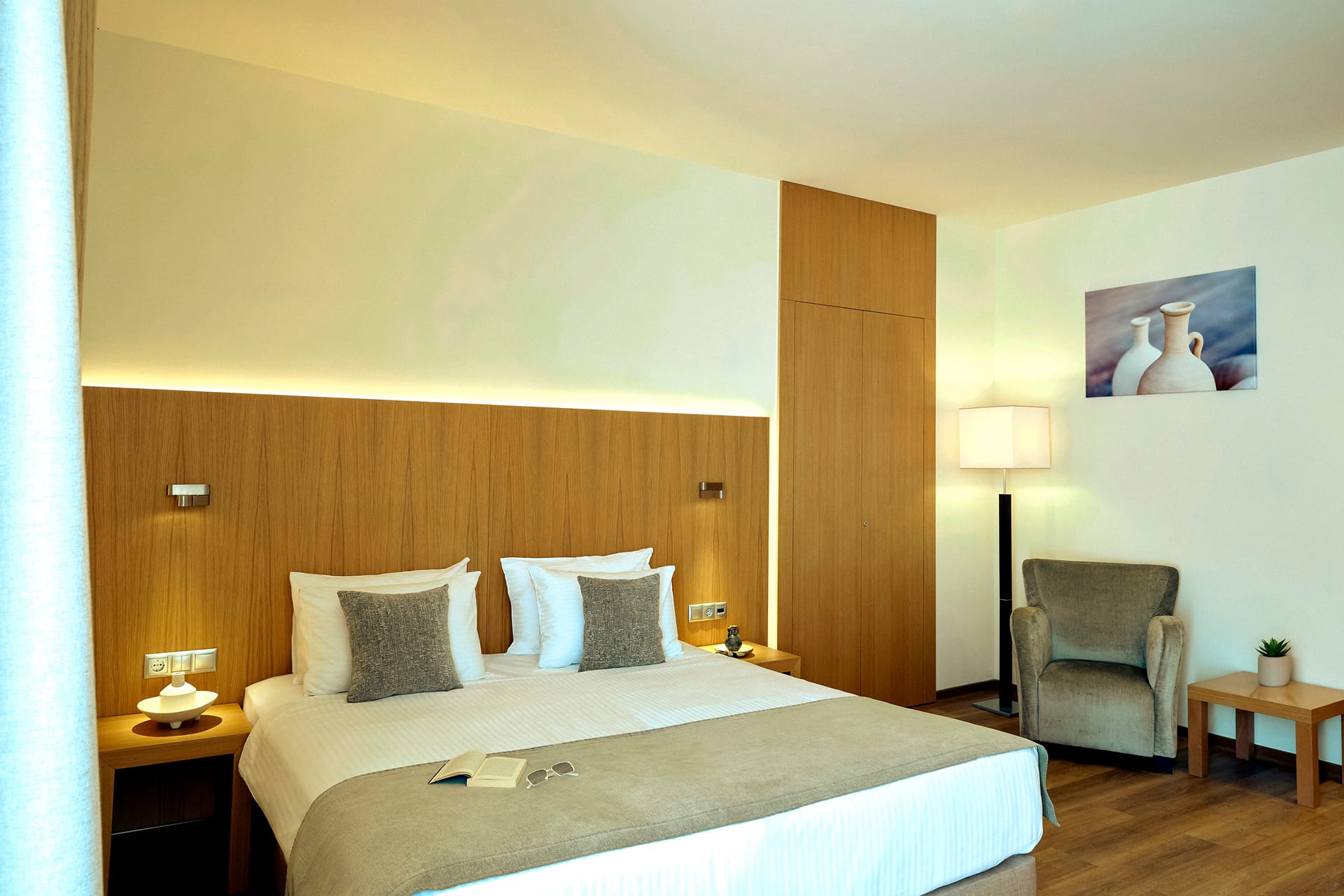 The Executive Suites with Shared Pool are the perfect choice for families or groups of friends seeking a relaxing environment by the pool while enjoying the tranquility of their private space, right in the heart of the city. These spacious 30 m² suites are designed for ultimate comfort, featuring a cozy bedroom, a modern bathroom, and contemporary décor, with direct access to the shared pool.